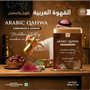 Experience the royal taste of the Middle East with Al Masnoon Arabic Qahwa, a traditional coffee blend crafted with the finest ingredients. This 200 g pack of Arabic Qahwa is enriched with the luxurious aroma of saffron and the refreshing warmth of green cardamom, delivering a smooth, light-bodied, and highly aromatic coffee experience.