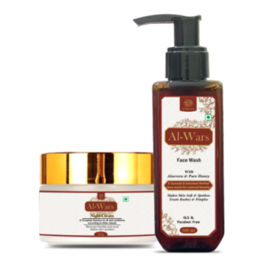 This thoughtfully curated combo includes Al-Wars Face Wash and Al-Wars Night Cream, designed to support clear, healthy-looking skin with a gentle herbal approach. Enriched with aloe vera and pure honey, the face wash helps cleanse impurities while leaving the skin soft and refreshed. The Al-Wars Night Cream works overnight to nourish the skin, helping improve texture and restore natural radiance.