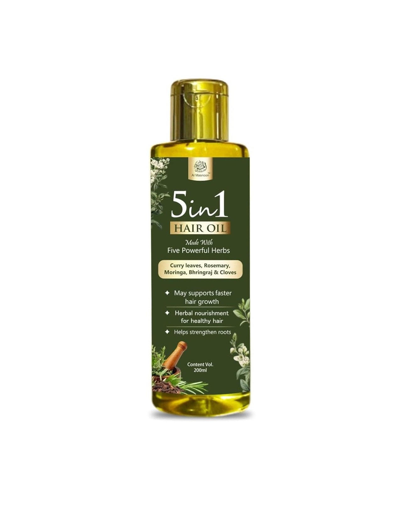 AL MASNOON 5 in 1 Hair Oil (200ml) & Shampoo (500ml) Combo Pack | Made With 5 Powerful Herbs Curry Leaves, Rosemary, Moringa, Bhringraj & Cloves | Supports Faster Hair Growth | Herbal Nourishment For Healthy Hair | Helps Streghthen Roots | 100% Natural