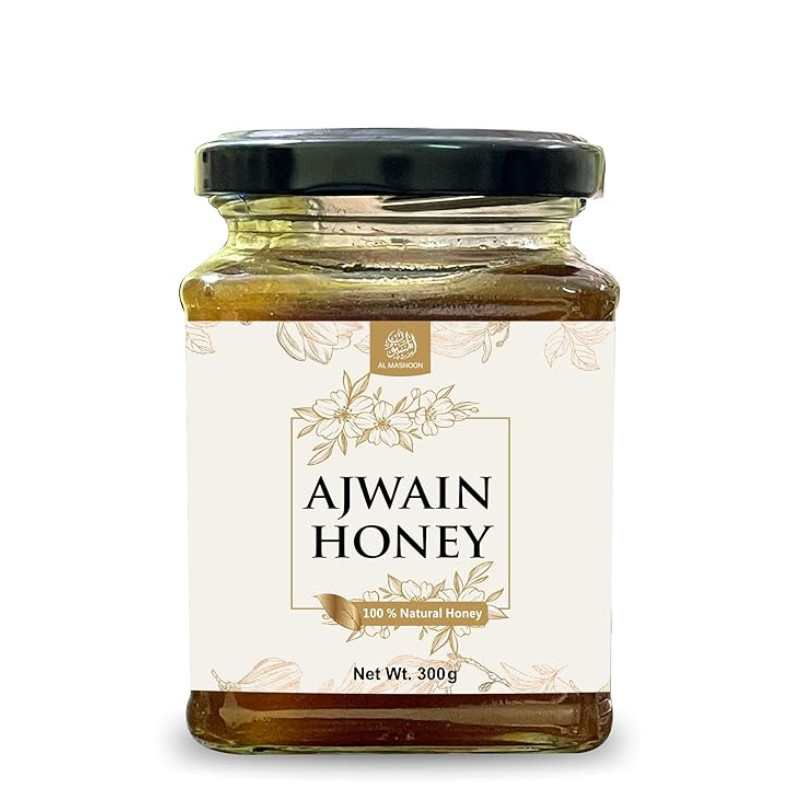 AL MASNOON Ajwain Honey 100% Natural & Pure 300 Grams (pack of 1)/ Raw & Unprocessed/Bees Collects From Ajwain Blossoms