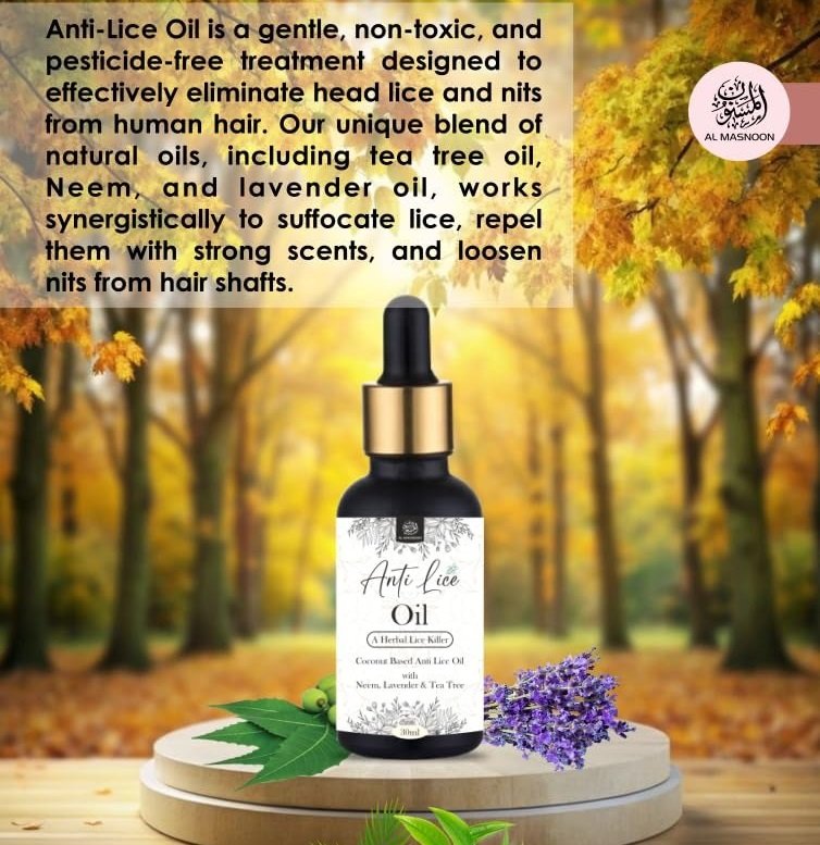 AL MASNOON Anti-Lice Oil 30ml / Herbal Lice Treatment with Neem, Tea Tree & Lavender/Natural Lice Killer for Hair & Scalp/Pack of 1