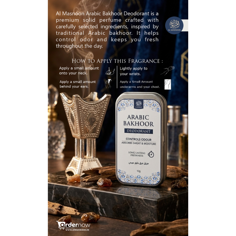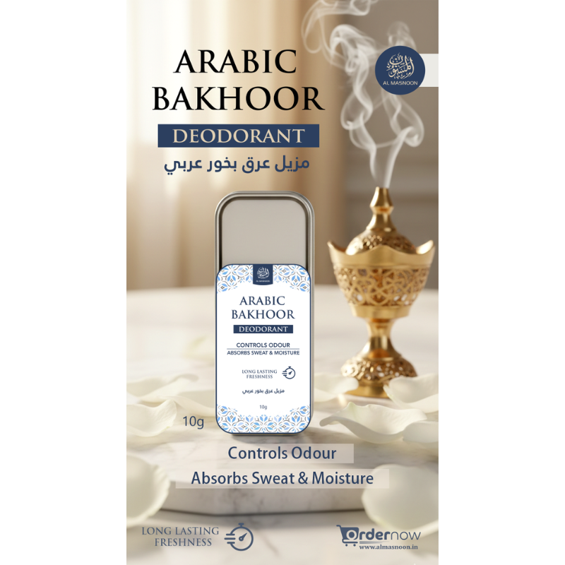 AL MASNOON Arabic Bakhoor Deodorant | Controls Odour, Absorbs Sweat And Moisture | Long Lasting Freshness | 10g