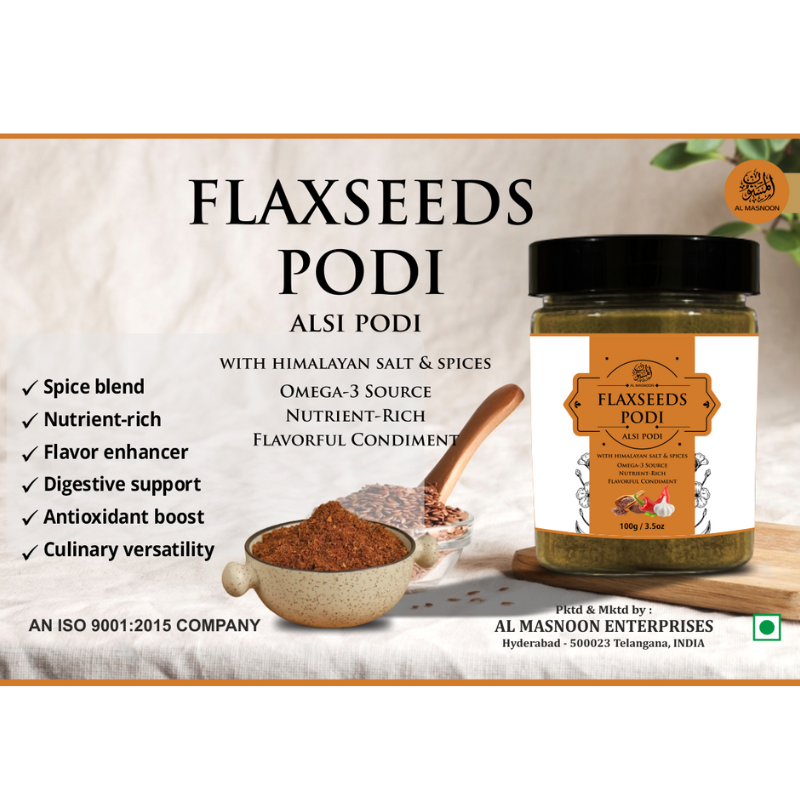 AL MASNOON Flaxseed Podi With Himalayn Salt And Spices/ 100% Natural Alsi Podi/ 100g