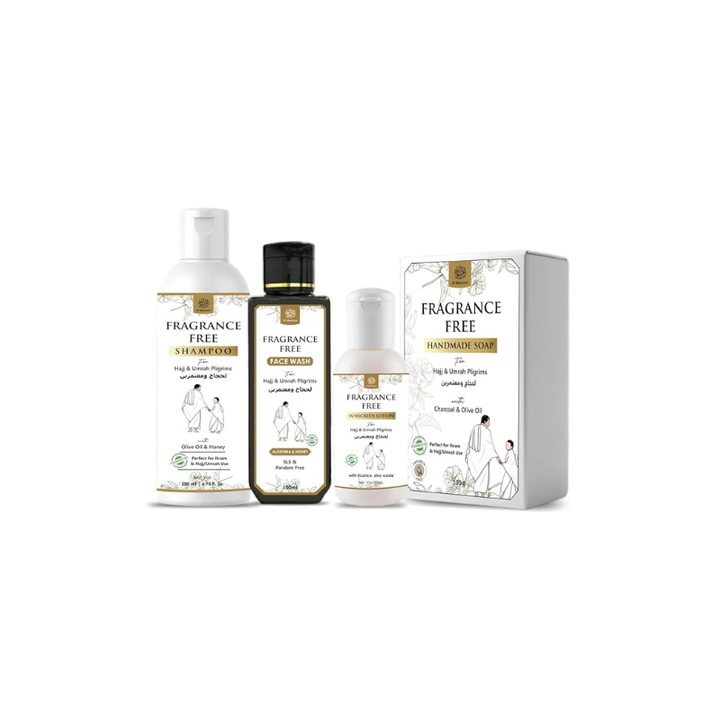 Be the first to review “AL MASNOON Fragrance Free Body Care Kit For Umrah & Hajj Pilgrims | Combo Of 4 Products | Fragrance Free Shampoo 200ml | Fragrance Free Face Wash 100ml | Fragrance Free Soap 100g | Fragrance Free Sunscreen Lotion 50ml | Unscented & Fragrance Free Kit” Cancel reply