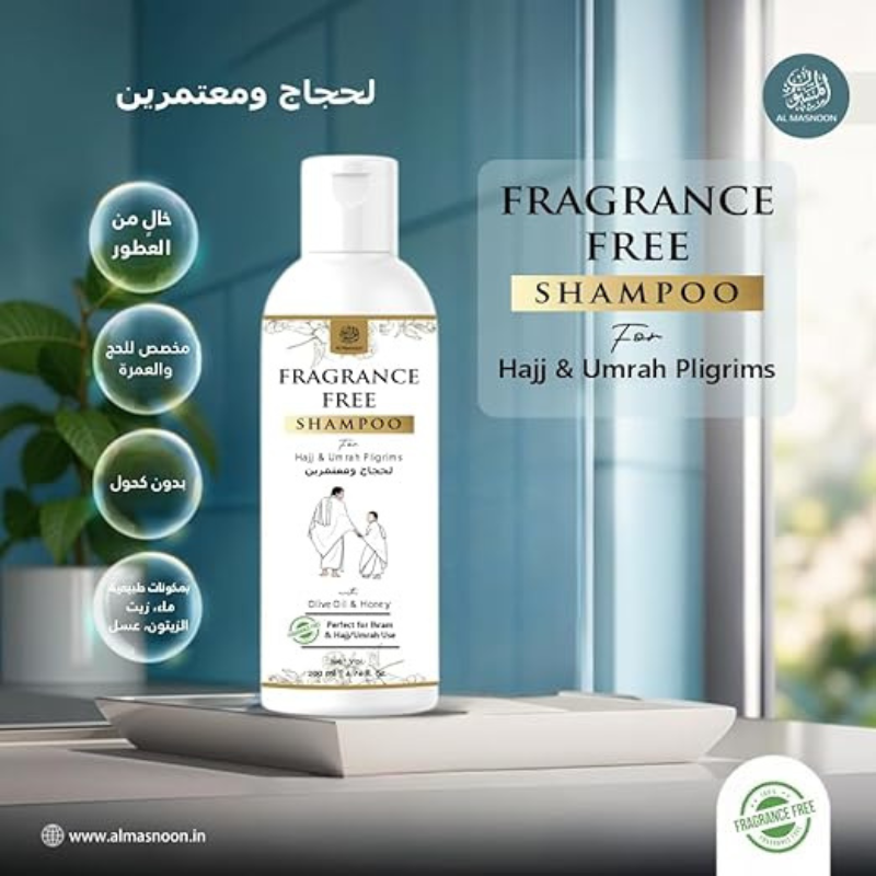 AL MASNOON Fragrance Free Body Care Kit For Umrah & Hajj Pilgrims | Combo Of 4 Products | Fragrance Free Shampoo 200ml | Fragrance Free Face Wash 100ml | Fragrance Free Soap 100g | Fragrance Free Sunscreen Lotion 50ml | Unscented & Fragrance Free Kit