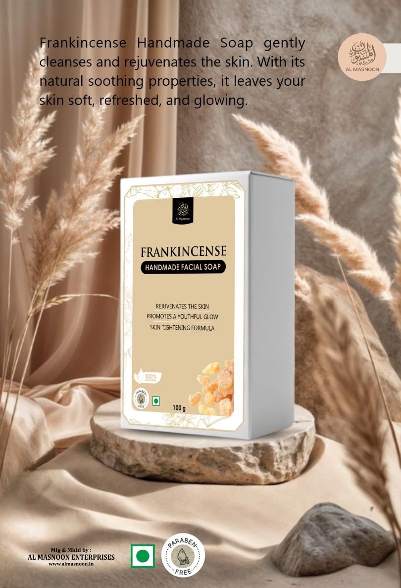 AL MASNOON Frankincense Soap (100g x 2 Pack) | Natural Skin Rejuvenating & Anti-Aging Bathing Bar | Enriched with Pure Frankincense Oil for Glowing, Firm & Hydrated Skin | Gentle Herbal Soap for Men & Women