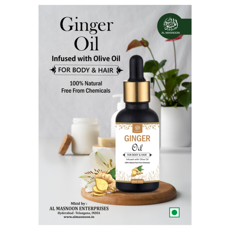 AL MASNOON Ginger Oil/Infused With Olive Oil 30ml (pack of 1) For Hair & Skin / 100% Natural & Pure