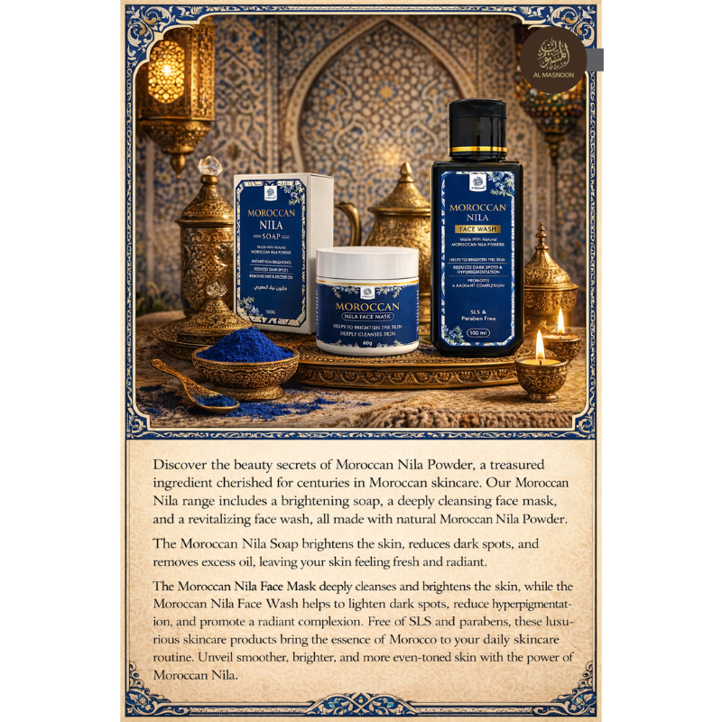 AL MASNOON Moroccan Nila Skincare Combo | Moroccan Nila Soap 100g | Moroccan Nila Face Mask 60g | Moroccan Nila Face Wash 100ml | Brightens Skin, Remove Dark Spots & Deeply Cleanses