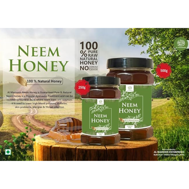 AL MASNOON Neem Honey | 100% Natural, Raw & Unprocessed | Immunity Booster With Antibacterial Properties | No Added Sugar Or Preservatives | 250G (Pack of 1)