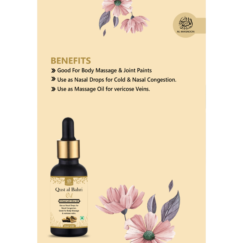 AL MASNOON Qust Al Bahri Oil | Infused With Olive Oil 30ml (Pack of 1) 100% Natural