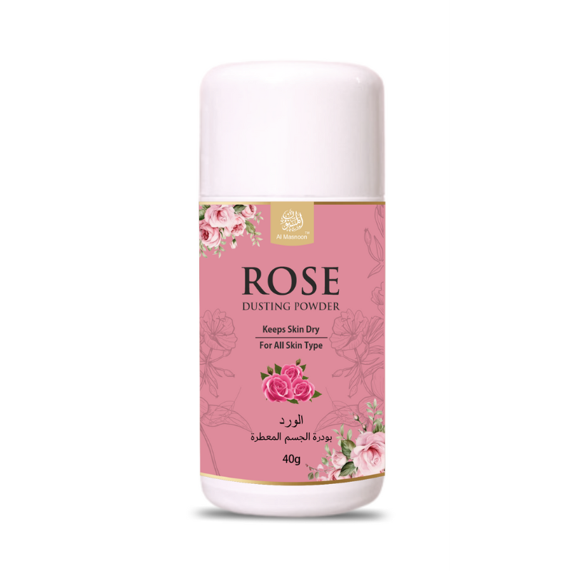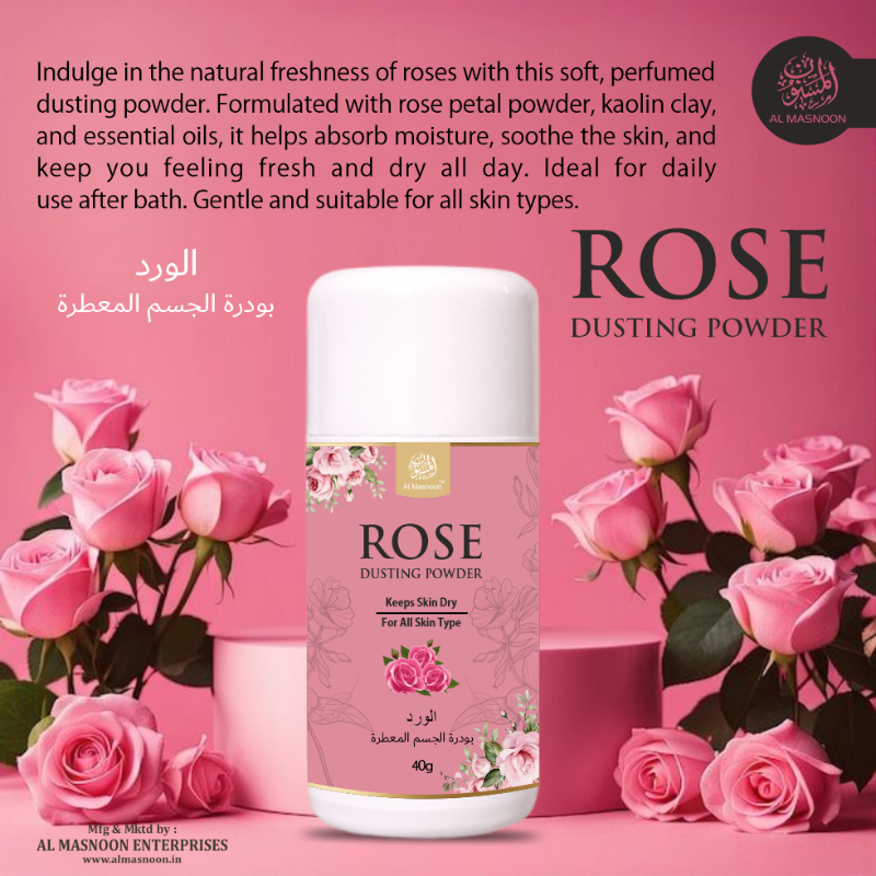 AL MASNOON Rose Dusting Powder For Face & Body | 40g Pack | All Skin Types | Natural Skin Freshener & Moisture Absorber