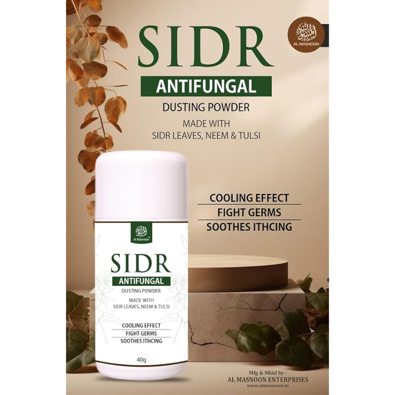 AL MASNOON Sidr Antifungal Dusting Powder For Body & Face / 40g | Made With Sidr Leaves, Neem & Tulsi | Natural Protection Against Fungal Infections | Soothing & Cooling Effect | Pack Of 1