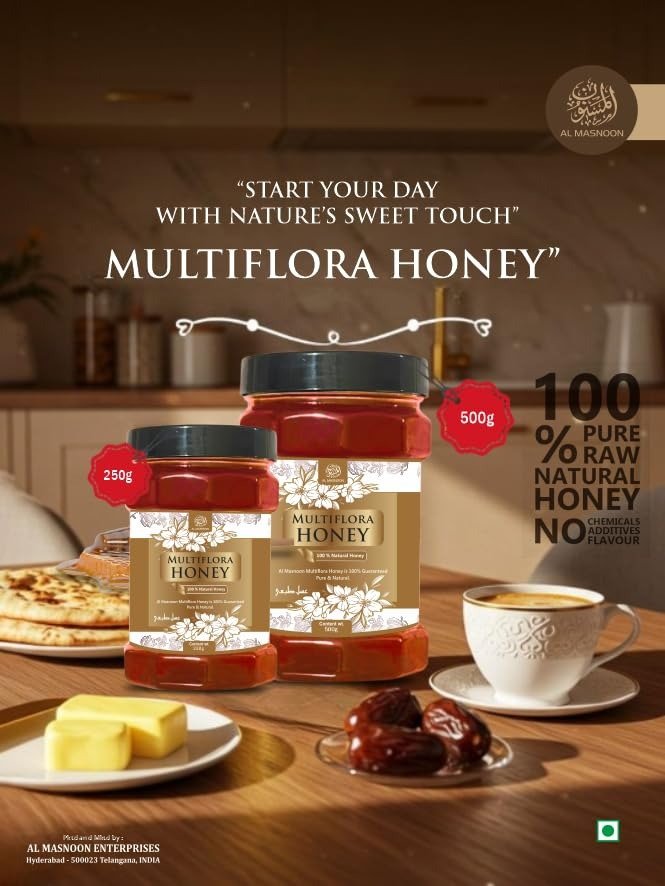AL MASNOON Pure Kashmiri Honey – Natural Multifloral Delight, 500g – Sourced from the Pristine Valleys of Kashmir for a Rich, Authentic Taste