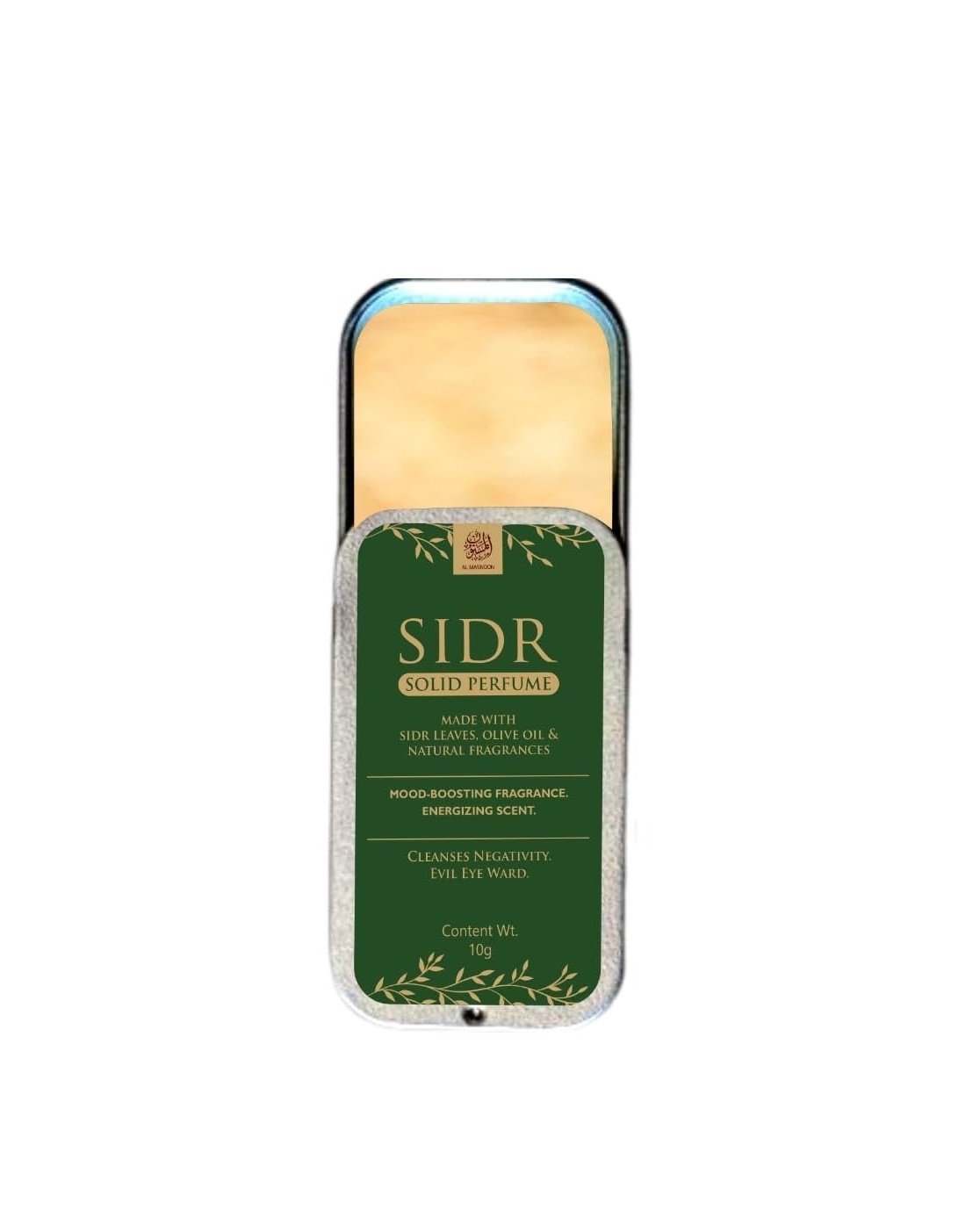AL MASNOON Sidr Solid Perfume 10g Pack | Natural Mood-Boosting & Energizing Scent with Sidr Leaves, Olive Oil, and Uplifting Fragrances | Ideal for Ruqaya and Enhancing Well-Being