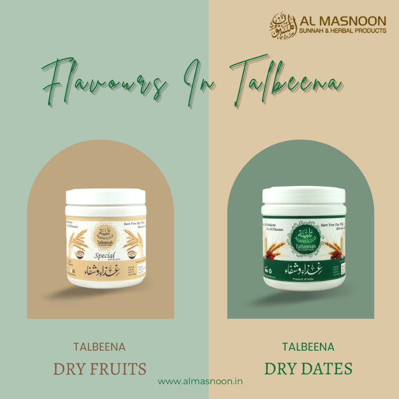 It is made by the finest quality of hulled barley which is blended with dry dates . Talbeena is a sunnah food .