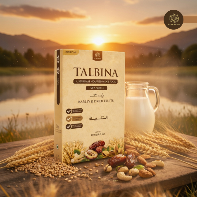 The talbina gives rest to the heart of the patient and makes it active and relieves some of his sorrow and grief.” [Saheeh al-Bukhaaree (5325)]. “It (talbina) soothes the grieving heart and cleanses the ailing heart just as one of you cleans dirt off his face with water.” [Saheeh Sunan ibn Maajah (3445)]