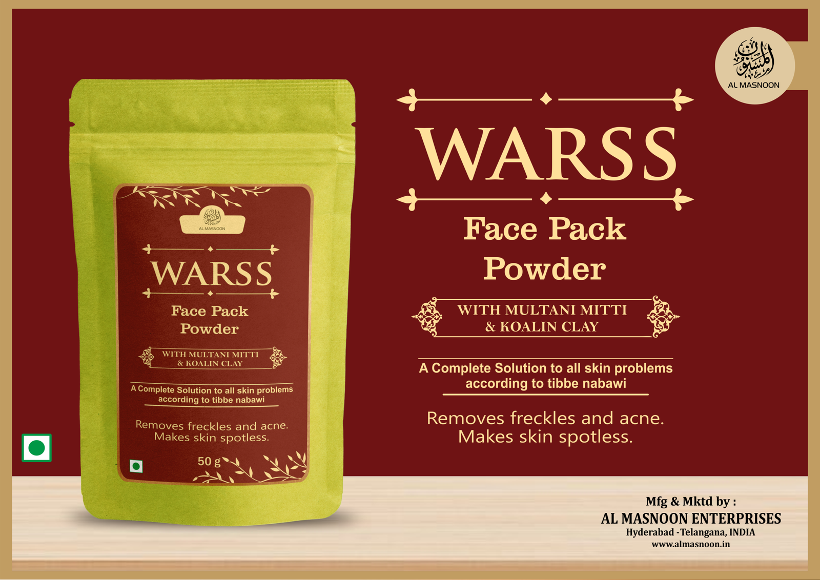 AL MASNOON Warss Face Pack Powder 50g /With Multani Mitti & Koalin Clay / Natural Face Pack